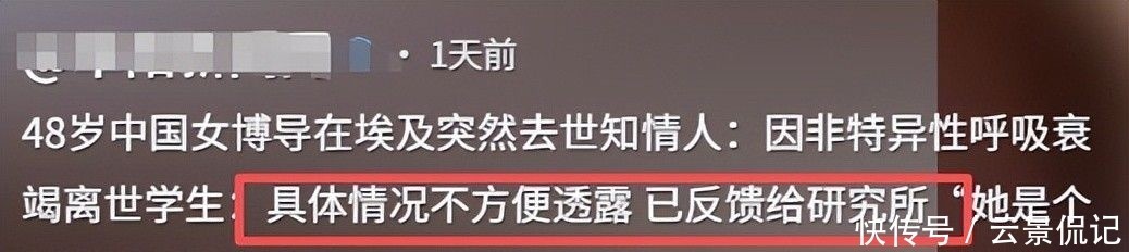 随着事件持续延展,关于她离世的具体原因、赴埃行程的完整脉络、学生口中那些未加修饰的真实记忆,陆续浮出水面。
